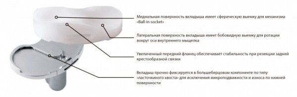 Система протезирования коленного сустава Advance® Medial-Pivot (MP) позволяет замещать коленный сустав как с резекцией,так и с сохранением задней крестообразной связки благодаря механизму «Ball-in-socket» («Шар во впадине»).Исследования показали, что в нормальном коленном суставе большеберцовая кость при сгибании вращается относительно оси внутреннего мыщелка бедра. Система Advance® MP позволяет сохранить та кую кинематику после протезирования коленного сустава, исключая возникновение парадоксальных движений , присущих традиционным системам.